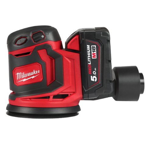 מלטשת אקצנטרית "5 נטענת 18V + סוללה 5.0AH MILWAUKEE