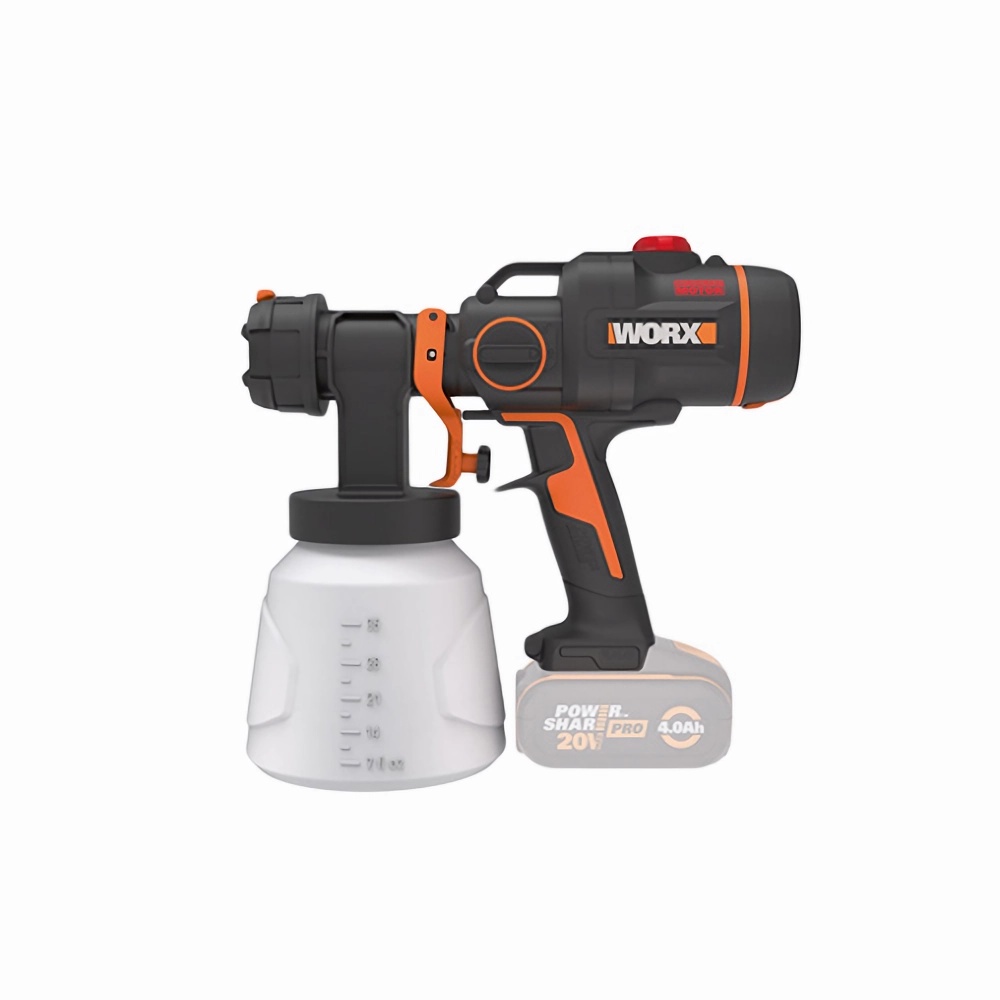 אקדח ריסוס צבע 20V דגם WX020.9 – גוף בלבד, קומפקטי וקל משקל, מצויד במיכל 1 ליטר ובטכנולוגיה לשליטה מדויקת בריסוס.