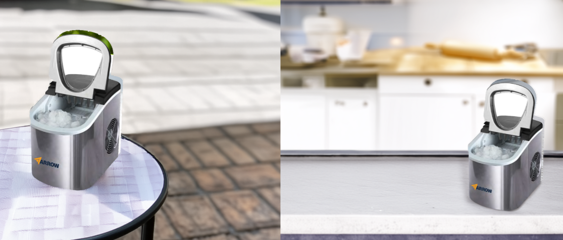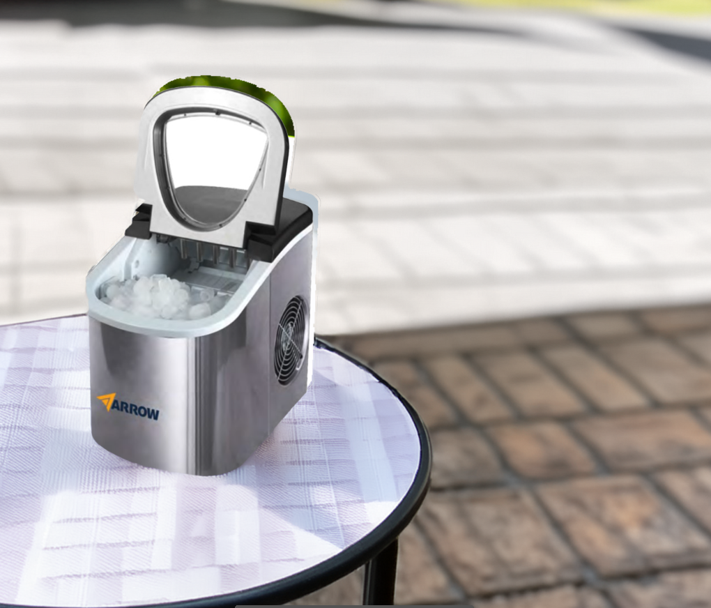 מכונת קרח ביתית ניידת מבית ARROW מספקת פתרון מהיר ונוח לייצור קרח לכל צורך – משקאות, אירוח, קמפינג ושימוש יומיומי. בעלת מבנה נירוסטה יוקרתי, פעולה שקטה ויעילה, וקיבולת סלסילת קרח של 0.7 ק"ג עם מיכל מים בנפח 2.2 ליטר.