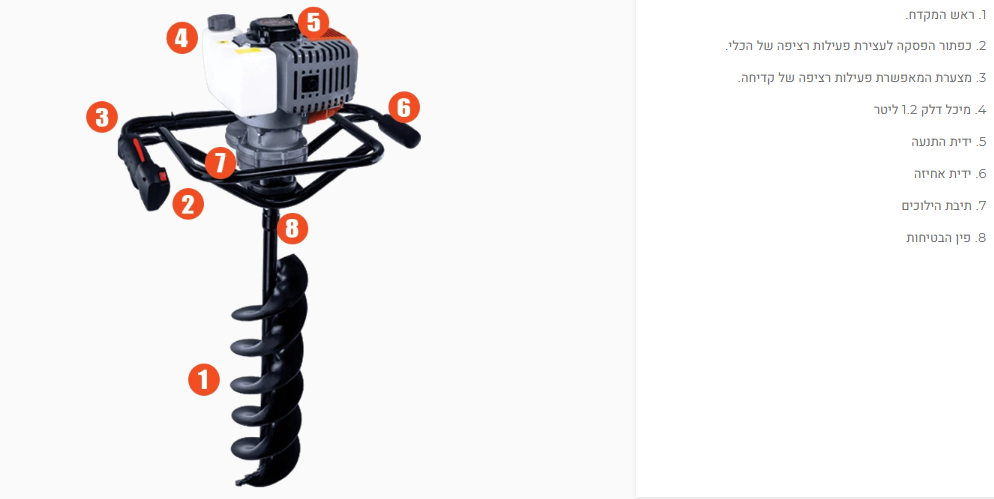מקדח אדמה מוטורי 300mm 42.7cc עם 3 מקדחים דגם 102407-001 מבית Hunter