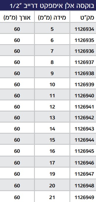 בוקסה אלן אימפקט דרייב "1/2 - מידה 21 מ"מ אורך 60 מ"מ 1126949