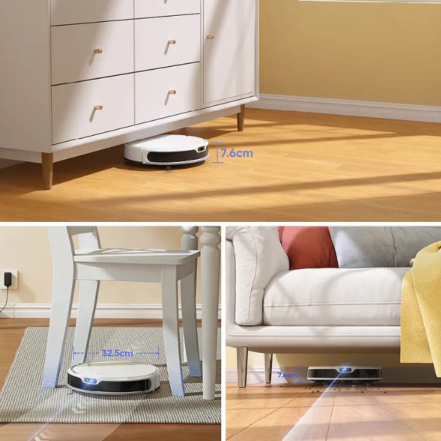 גובה נמוך של 7.6 ס"מ – מאפשר לשואב-שוטף הרובוטי לעבור בקלות מתחת לרהיטים נמוכים כמו מיטות ושולחנות.