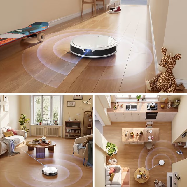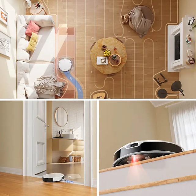 מיפוי מלא של הבית – החיישן LiDAR ממפה את הבית בצורה מדויקת ומייצר נתיבים מותאמים למעבר יעיל.