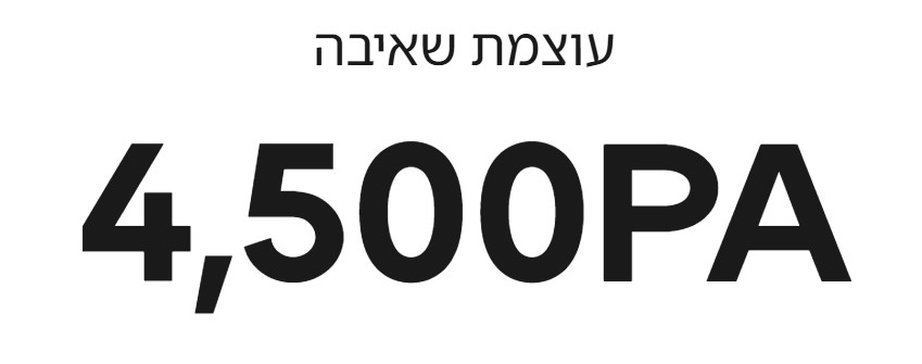 עוצמת שאיבה של 4,500PA – מבצע שאיבה חזקה שמסירה אבק, פירורים, שיער ולכלוך בצורה יסודית.