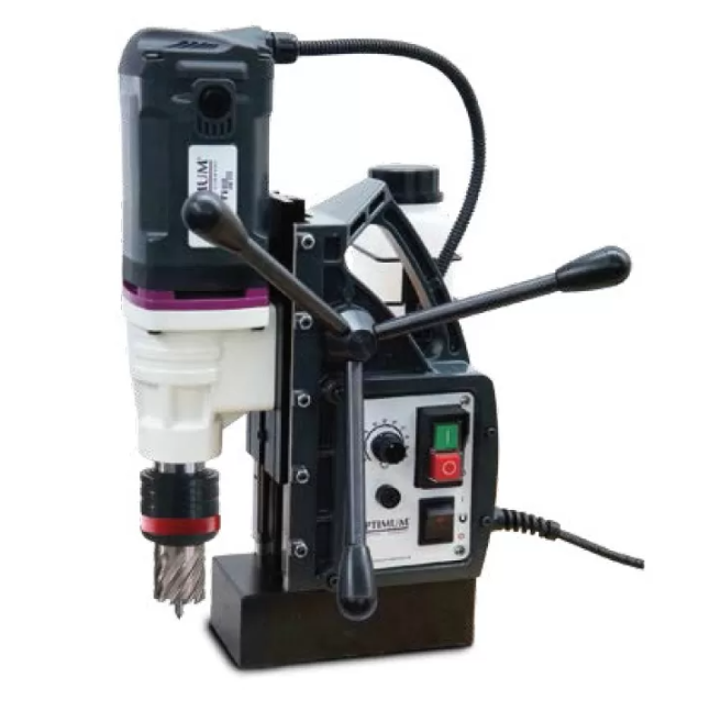 סטנד מגנטי מקצועי מבית OPTIMUM, המיועד לעבוד עם מקדחים חלולים עד קוטר 50 מ"מ. המערכת מצוידת בווסת מהירות המתכוונן בין 100 ל-670 סל"ד, ומאפשרת שליטה מלאה במהירות העבודה. המערכת כוללת מיכל נוזל קירור לשיפור ביצועי הקידוח ושמירה על טמפרטורת העבודה. כוח המגנט החזק של 15600 ניוטון מבטיח יציבות מוחלטת בזמן העבודה, כך שניתן לעבוד בצורה מדויקת ובטוחה. בנוסף, קיימת אופציה לשימוש עם מקדח קוני 13 מ"מ, בתוספת אביזרים.