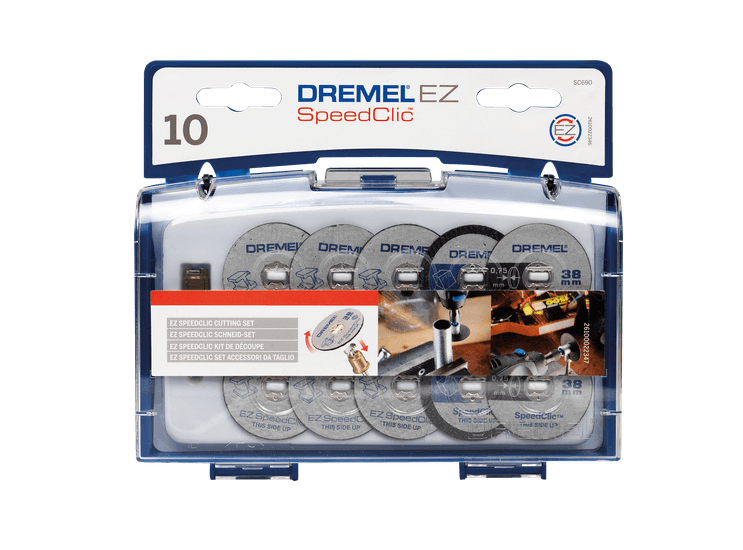 סט מקצועי הכולל 10 דיסקיות חיתוך בטכנולוגיית EZ SpeedClic המאפשרת החלפה מהירה וללא צורך במפתח.