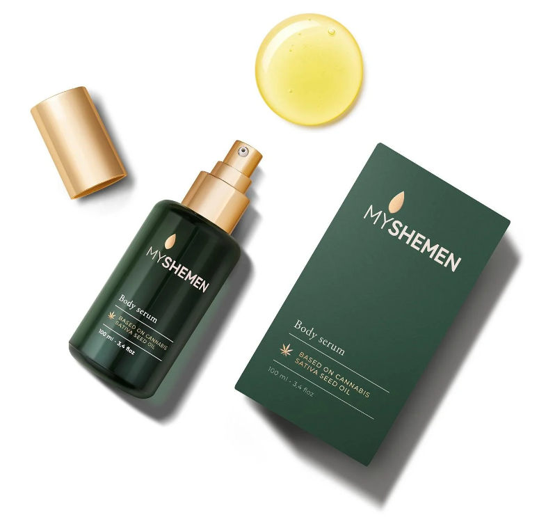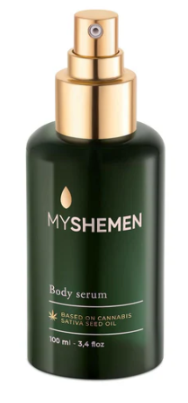 סרום גוף של My shemen בעל מרקם קטיפתי ועשיר המעניק בוסט של לחות מוגברת. הסרום מכיל שמן קנאביס, ויטמינים וחומצות אמינו, המסייעים בהגנה מפני נזקים סביבתיים להאטת הזדקנות העור. הוא מכיל גם גליצרין, ויטמין E וחומצה לקטית המותירים את העור גמיש, רך וחלק כמשי. והניחוח? נשאר ונשאר לאורך כל היום.