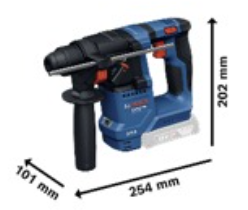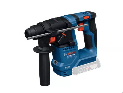 המכשיר תואם לסוללות 18V של BOSCH, מגיע כגוף בלבד, וכולל פוטר SDS-Plus להחלפת מקדחים מהירה וללא כלים.