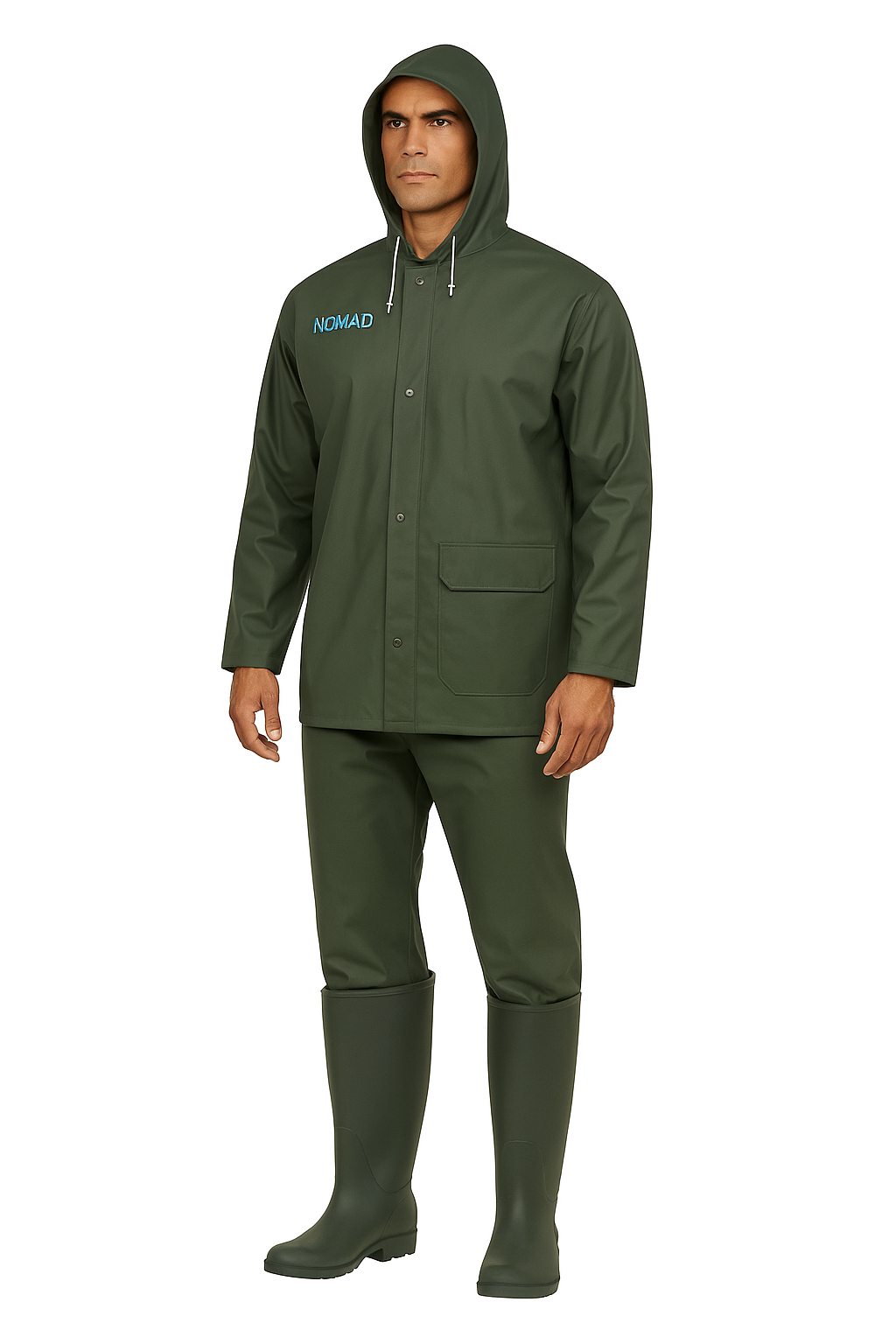 חליפת סערה איכותית בצבע ירוק מבית NOMAD , המיועדת לעבודה בתנאי מזג אוויר קשים.