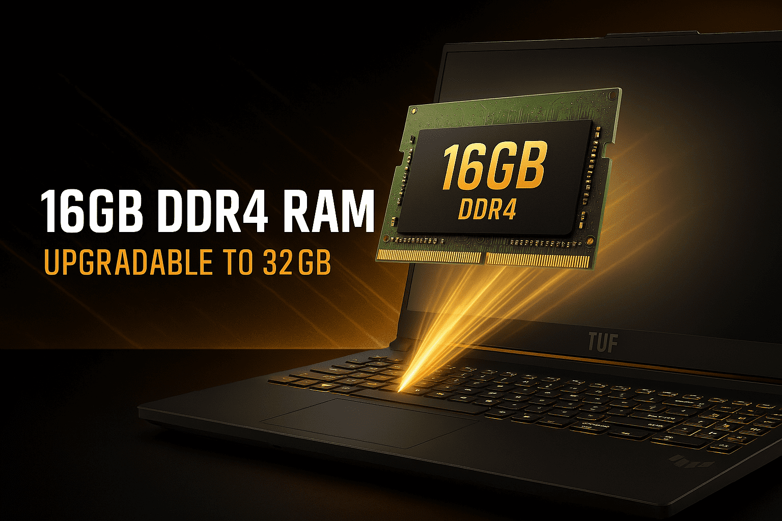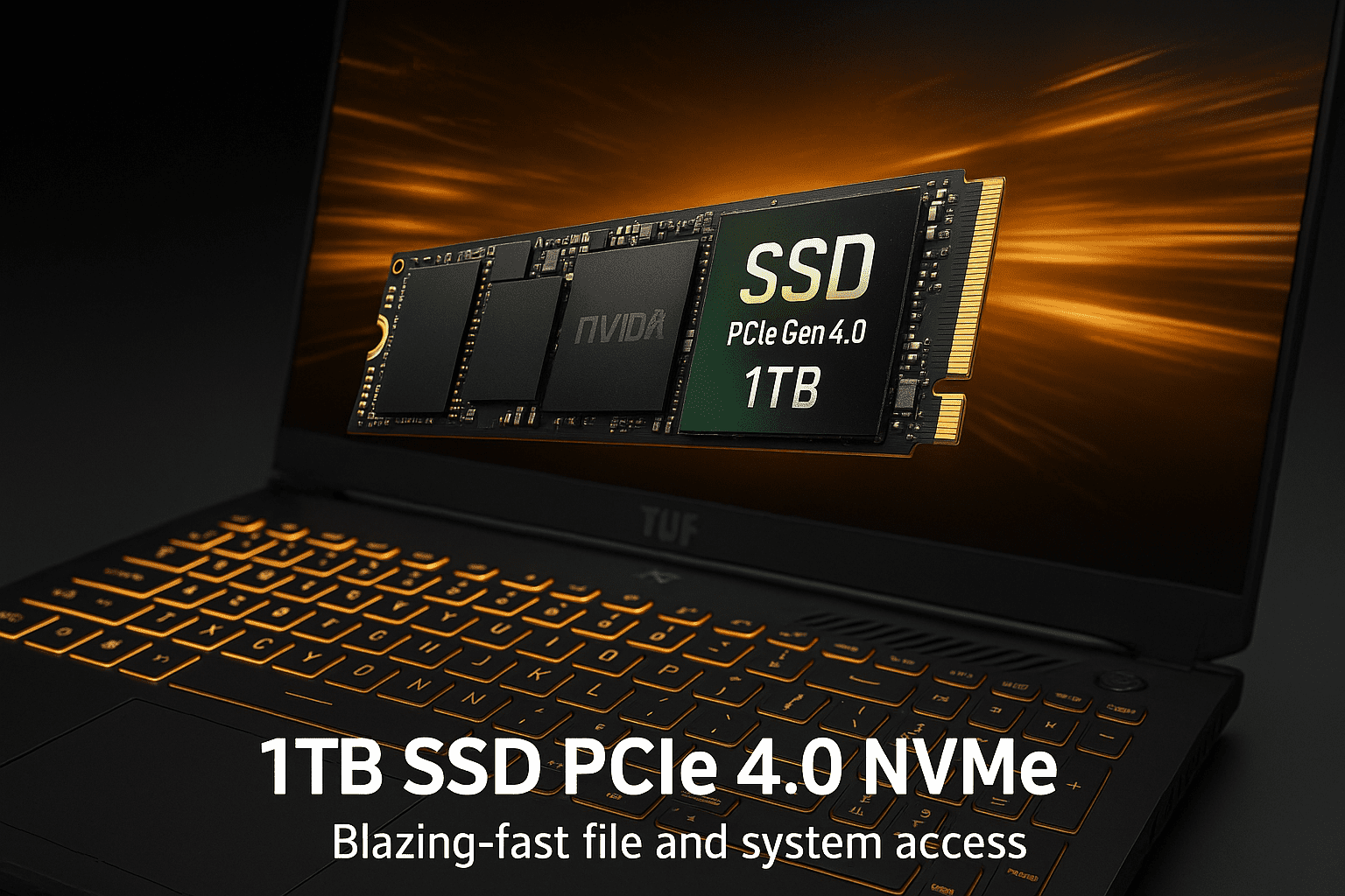 המחשב מגיע עם 16GB DDR4 RAM, הניתנים לשדרוג עד 32GB, ועם 1TB SSD PCIe 4.0 NVMe – לאחסון מהיר במיוחד של קבצים, משחקים ופרויקטים גדולים.