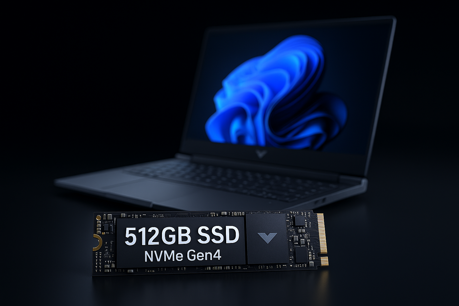 המחשב כולל 16GB DDR4-3200MHz RAM, אחסון מהיר במיוחד 512GB PCIe Gen4 NVMe SSD, וחיבוריות מתקדמת הכוללת Wi-Fi 6, Bluetooth 5.3, וסט מקיף של כניסות USB, HDMI ו-RJ-45.