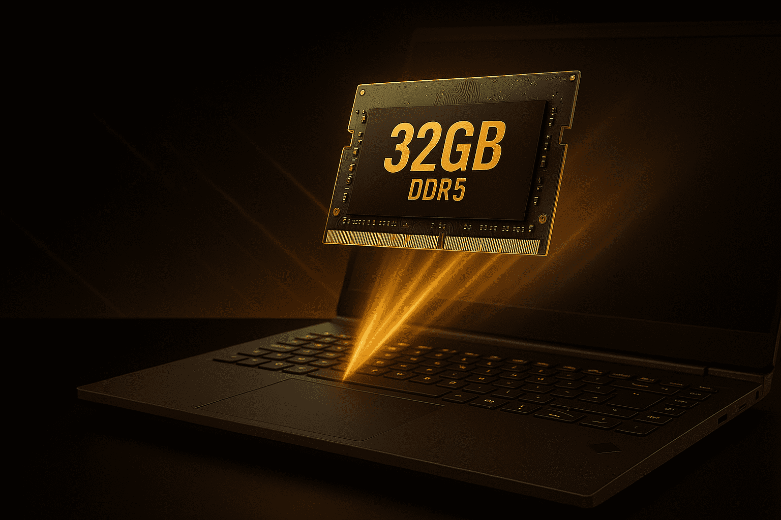 המחשב מגיע עם 32GB DDR5-5600MHz (2×16GB), הניתן לשדרוג עד 64GB, ואחסון מהיר 1TB PCIe NVMe SSD.
