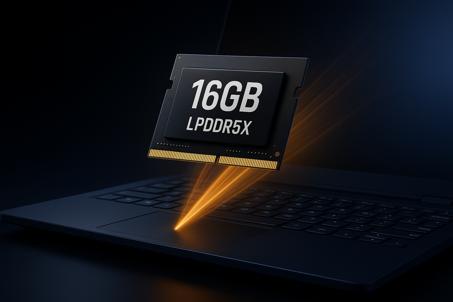 הזיכרון בנפח 16GB מסוג LPDDR5x מספק מהירות גבוהה ויעילות אנרגטית, ומתאים לעבודה שוטפת עם מספר יישומים במקביל.
