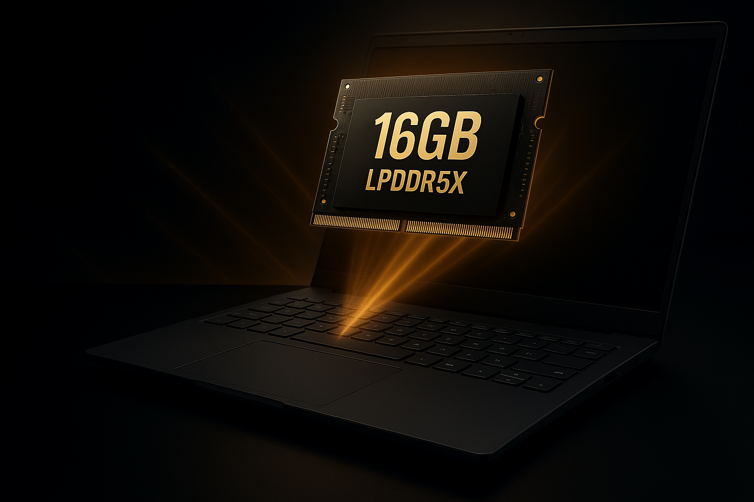 הזיכרון בנפח 16GB מסוג LPDDR5X מבטיח ביצועים גבוהים וצריכת אנרגיה נמוכה, אידיאלי לעבודה רציפה במגוון יישומים.