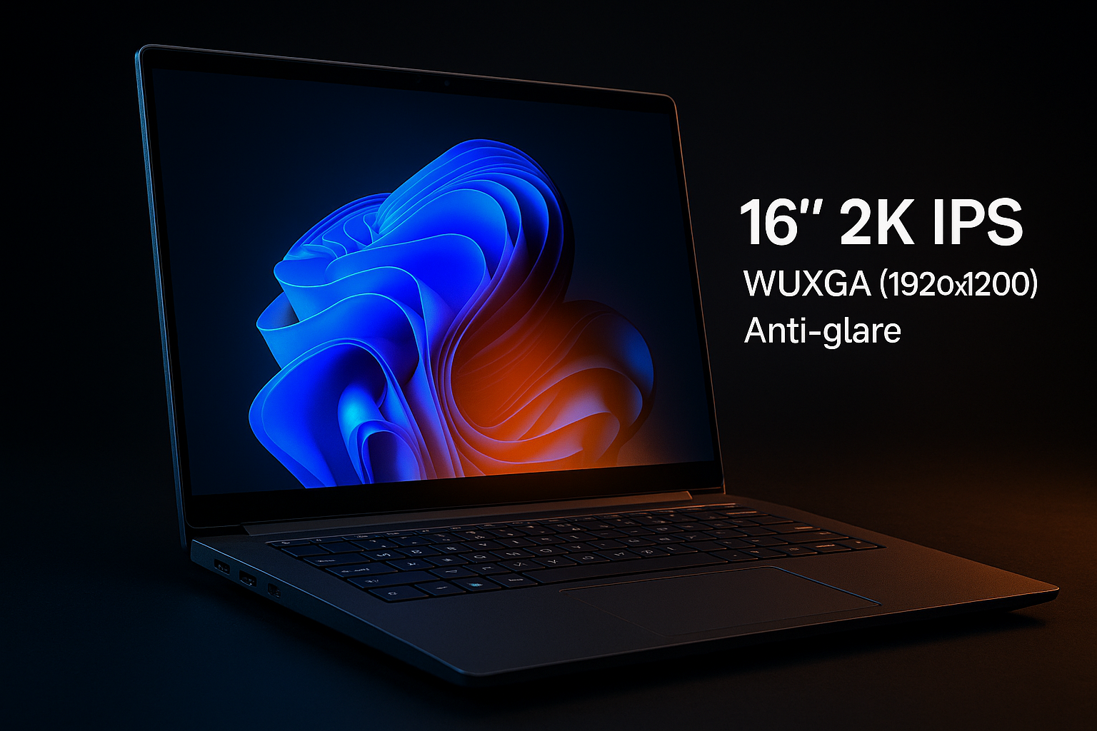 המסך בגודל 16" ברזולוציית 2K (1920×1200) מסוג IPS עם ציפוי אנטי־השתקפות מספק חוויית צפייה חדה, מדויקת ונעימה לעין.