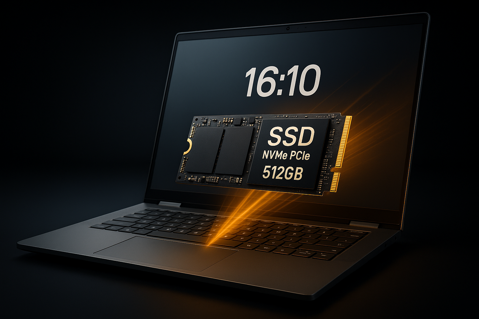 כונן SSD בנפח 512GB מספק מהירות גבוהה בפתיחת תוכנות וקבצים, טעינה מהירה של מערכת ההפעלה וביצועים שקטים לאורך זמן.