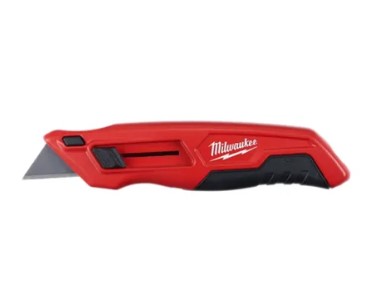 סכין טרפז מקצועית עם מחסנית פנימית ללהבים מבית MILWAUKEE, דגם 48-22-1510, כולל 5 להבים – פתרון אידיאלי לעבודות חיתוך מדויקות, מהירות ובטוחות.