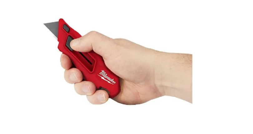 סכין בטיחות קומפקטית עם קפיץ וּלהבי טרפז מבית MILWAUKEE, דגם 48-22-1511 – סכין ייעודית לעבודה בטוחה, מדויקת ונוחה, עם מנגנון שליפה מהירה.