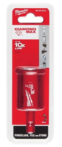 מקצה כוס יהלום בקוטר 15 מ"מ מסדרת Diamond Max של Milwaukee, מותאם גם למברגות אימפקט, מיועד לקידוח מדויק ומהיר בקרמיקה, פורצלן, אבן וזכוכית.