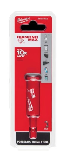 מקצה כוס יהלום בקוטר 12 מ"מ מסדרת Diamond Max של Milwaukee, מותאם לשימוש עם מברגות אימפקט, ומיועד לקידוח נקי ומהיר בקרמיקה, פורצלן, זכוכית ואבן.