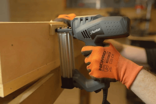 אקדח הסכינים/מסמרים החשמלי של Hunter דגם 102101-001 – כלי עבודה עוצמתי ומדויק לשימוש מקצועי בהדבקות, התקנות, עבודות גבס, ריצוף ועוד, המתאים למסמרים וסכיני מסמרים חשמליים.