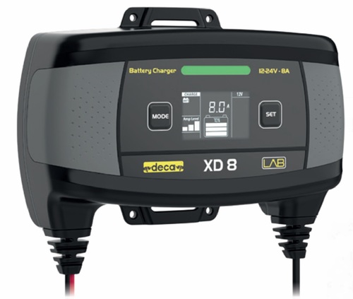 מטען מצברים נייד DECA LAB XD8 לעוצמה עד 8A, תואם למתחים 12V / 24V – פתרון מהיר ואמין לטעינה ותחזוקת מצברים לרכב, משאיות, ציוד כבד וכלי עבודה.