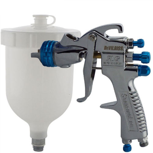 מרסס צבע מקצועי בעל כוס עליון מבית DeVilbiss דגם 52SLG-620-18K10, מתאים לצביעה מדויקת של משטחים שונים, עם פיזור חלק ואחיד של צבעים, לקה וחומרים דקים-בינוניים.