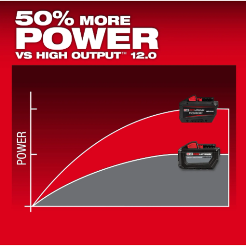 סוללת MILWAUKEE M18 REDLITHIUM FORGE HD12.0 מספקת 50% יותר כוח מסוללת HIGH OUTPUT™ 12.0, טעינה מהירה במיוחד, קירור אקטיבי וחיי סוללה הארוכים ביותר – לביצועים מקסימליים בעבודות הקשות ביותר.