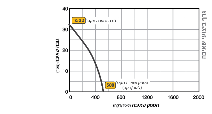 - ספיקה מקסימלית: 500 ליטר לדקה