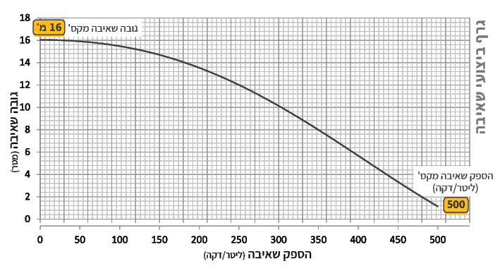 - ספיקה מקסימלית: 500 ליטר לדקה