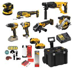 סט 8 כלים נטענים מפואר + זוג סוללות 2A ומטען + אביזרים DEWALT